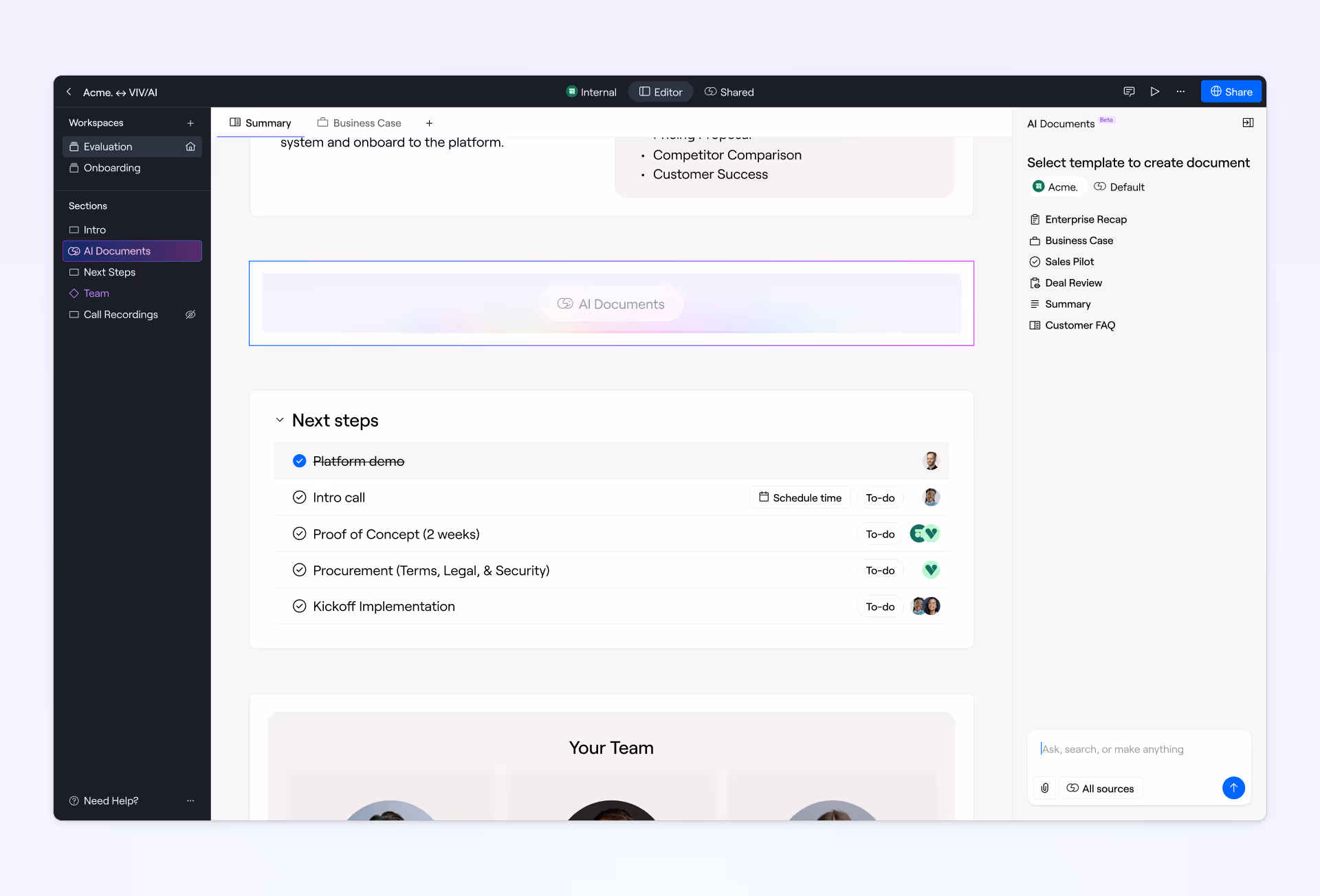 Sign up for free to try AI Documents, or request a demo from our team to trial all our AI features.