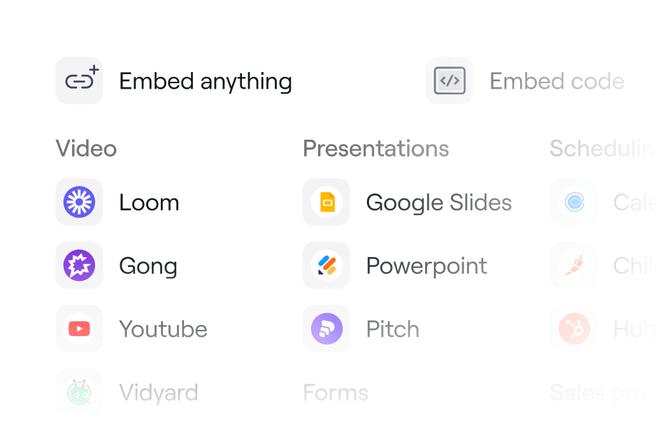 Embed PDFs, videos, links, iframes, and more. If it can be embedded, it can be embedded in Dock.