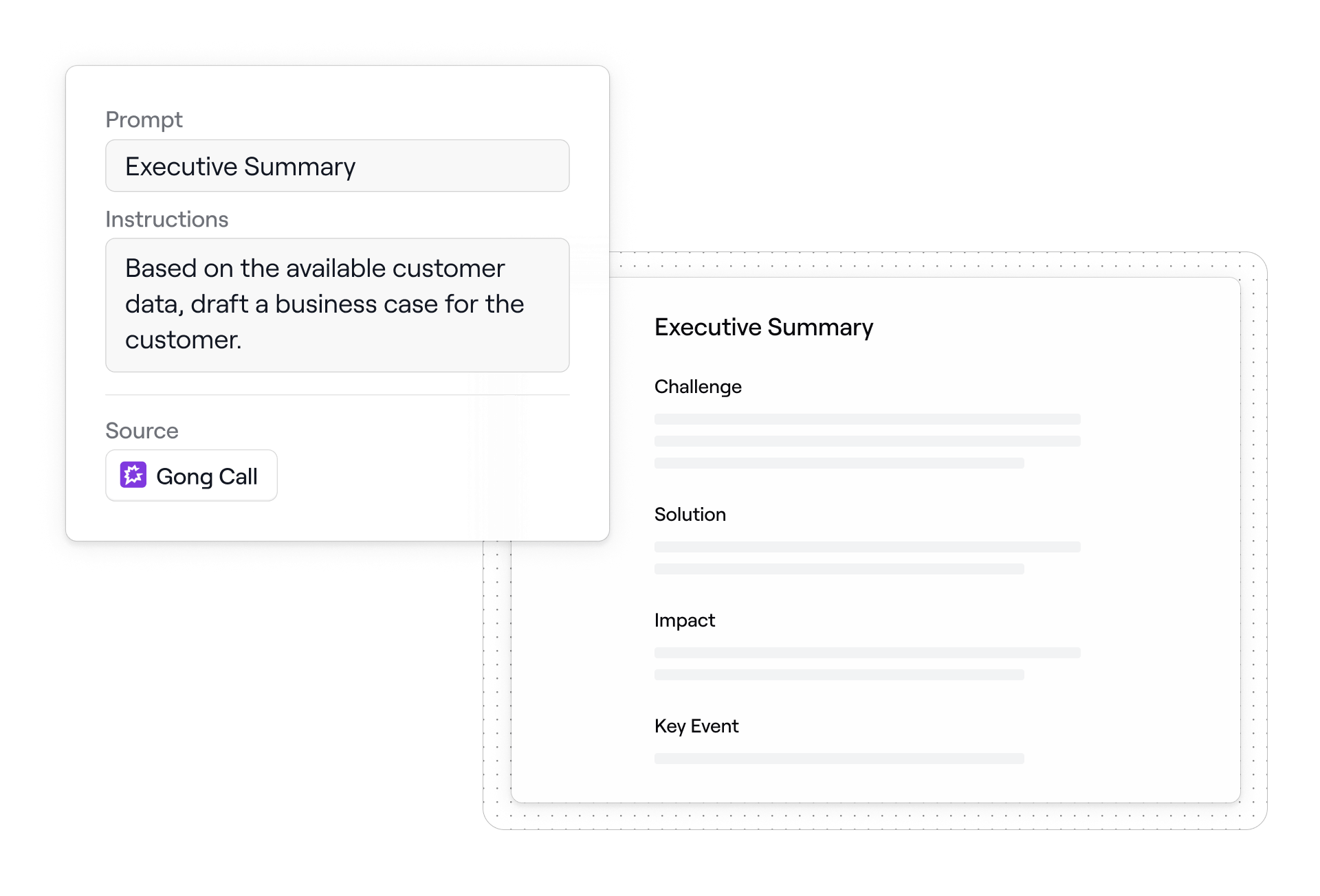 Build a library of custom prompts to AI-generate proposals, business cases, mutual action plans, follow-up emails, and more based on live customer data.