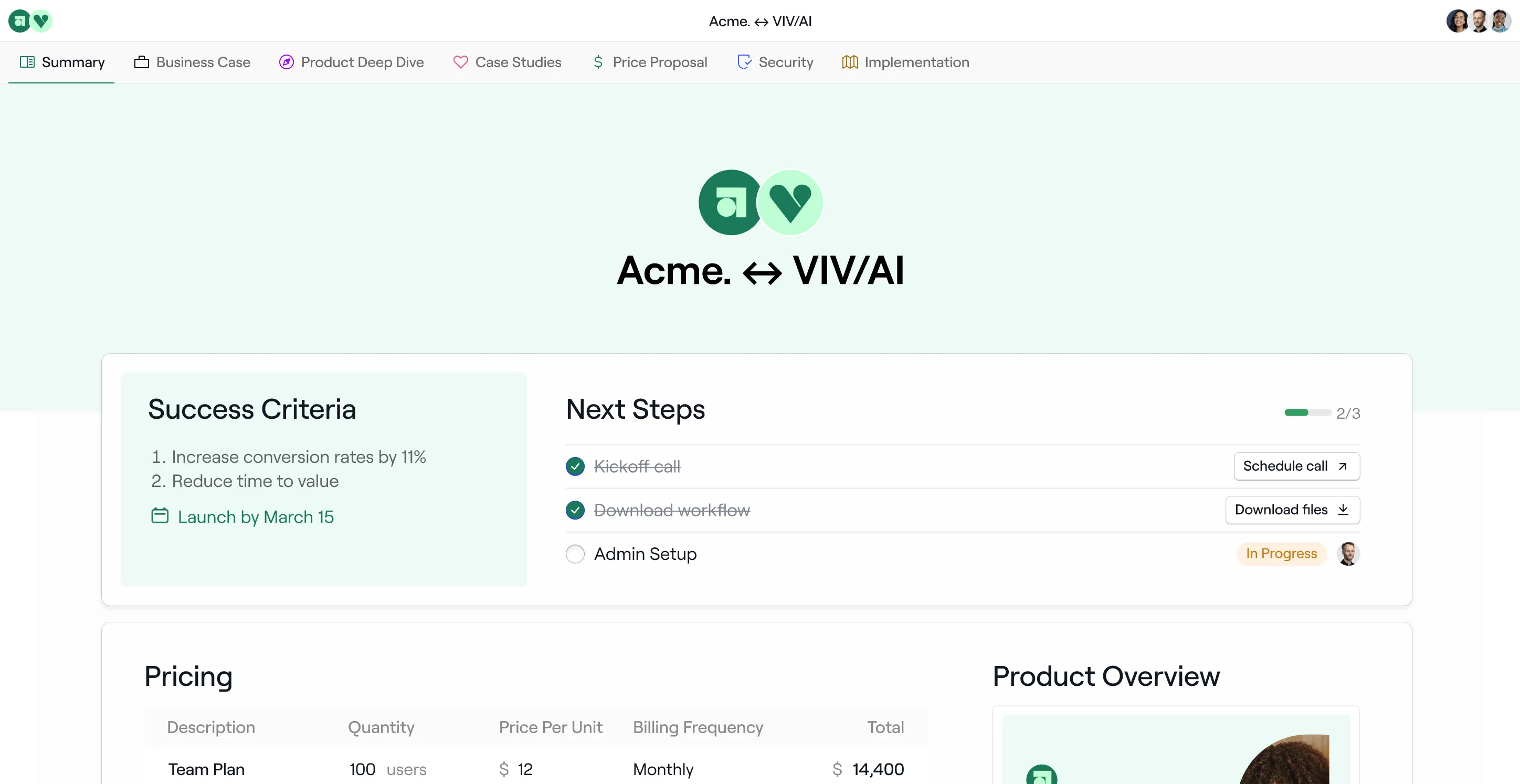 Empower buyer champions to sell internally and simplify new client onboarding by giving your customers everything they need in one link.