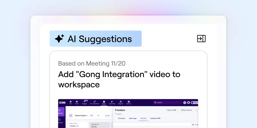 ✨ Example: When a prospect told us they wanted to use Dock for sales, Dock AI suggested adding the relevant demo video.