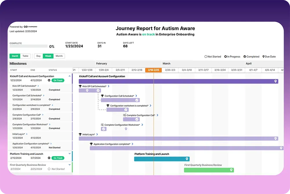 This centralization eliminates the friction that kills onboarding momentum. When customers know exactly where to find what they need, they progress faster through implementation milestones.