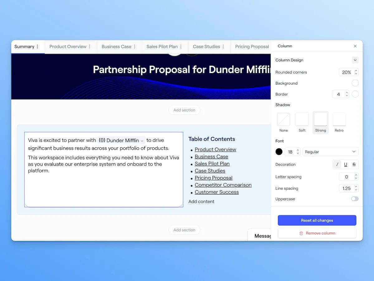 From section styles to font sizing to upgraded widgets, we’ve rebuilt the workspace design system to give you the full power to create workspaces that feel bespoke to your brand (so your Marketing team can sleep better at night).