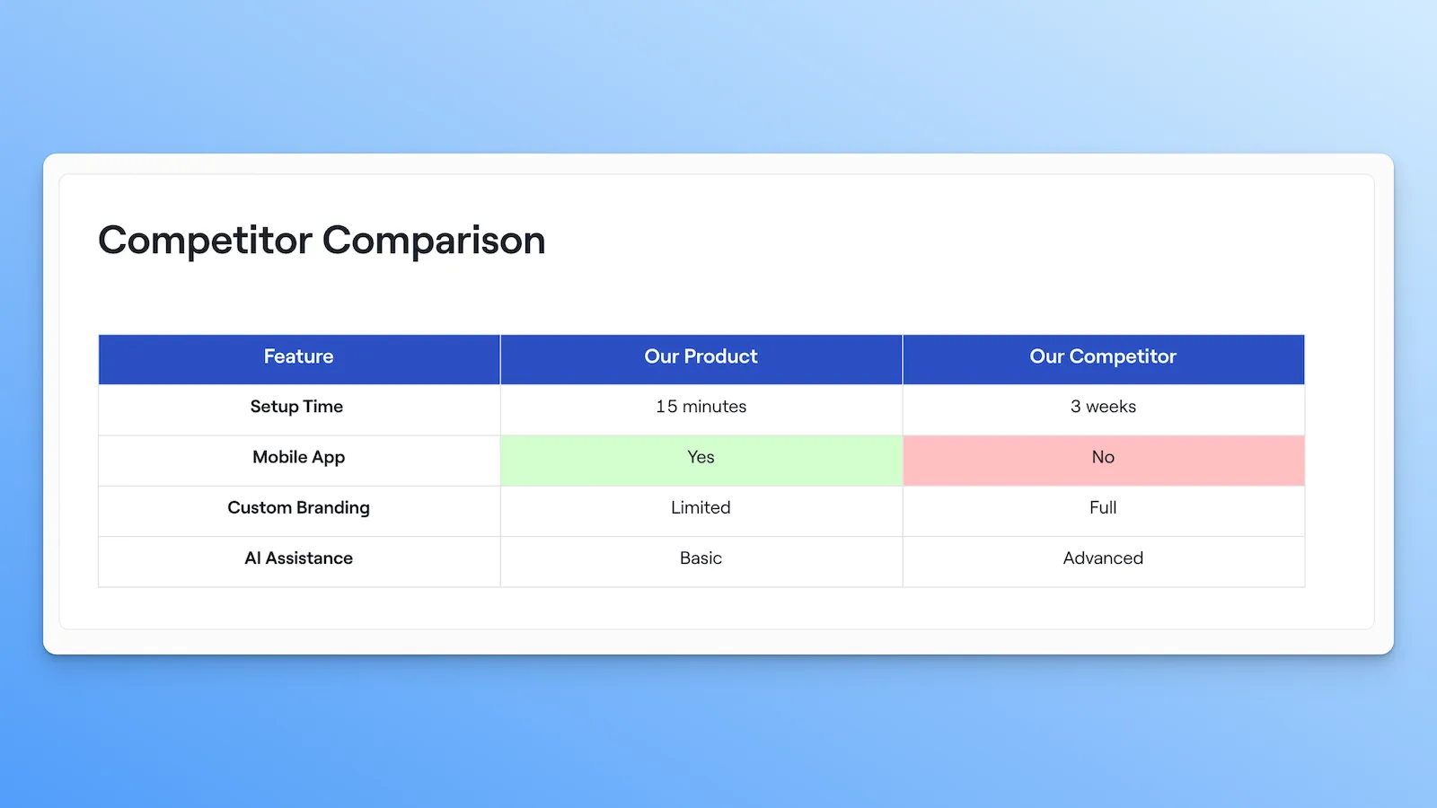 It should feel a lot like editing a slide deck—without the pain of actually building another slide deck.