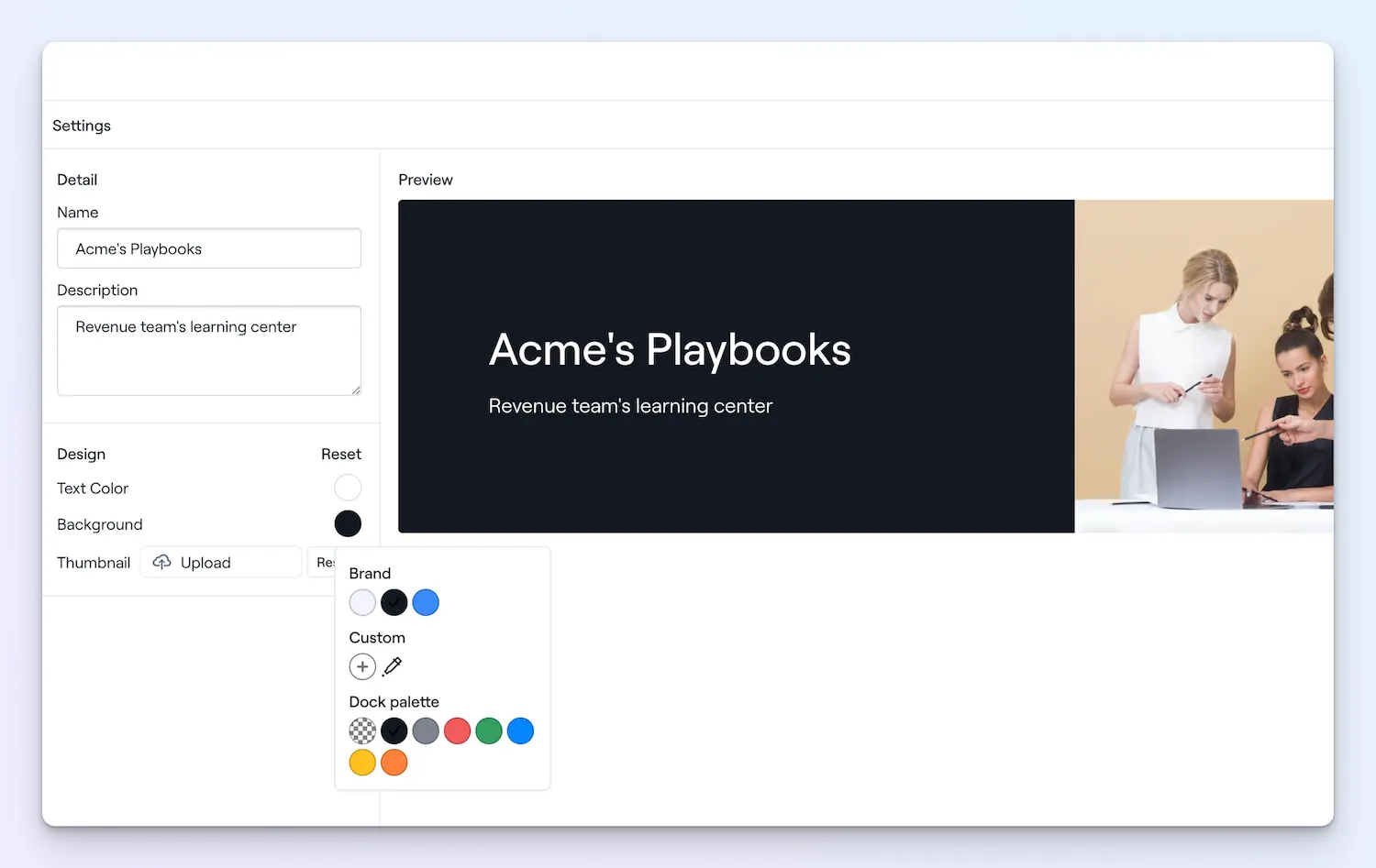 You can also add your company branding to the Playbooks dashboard and design the thumbnail for each playbook, so they feel more like yours.