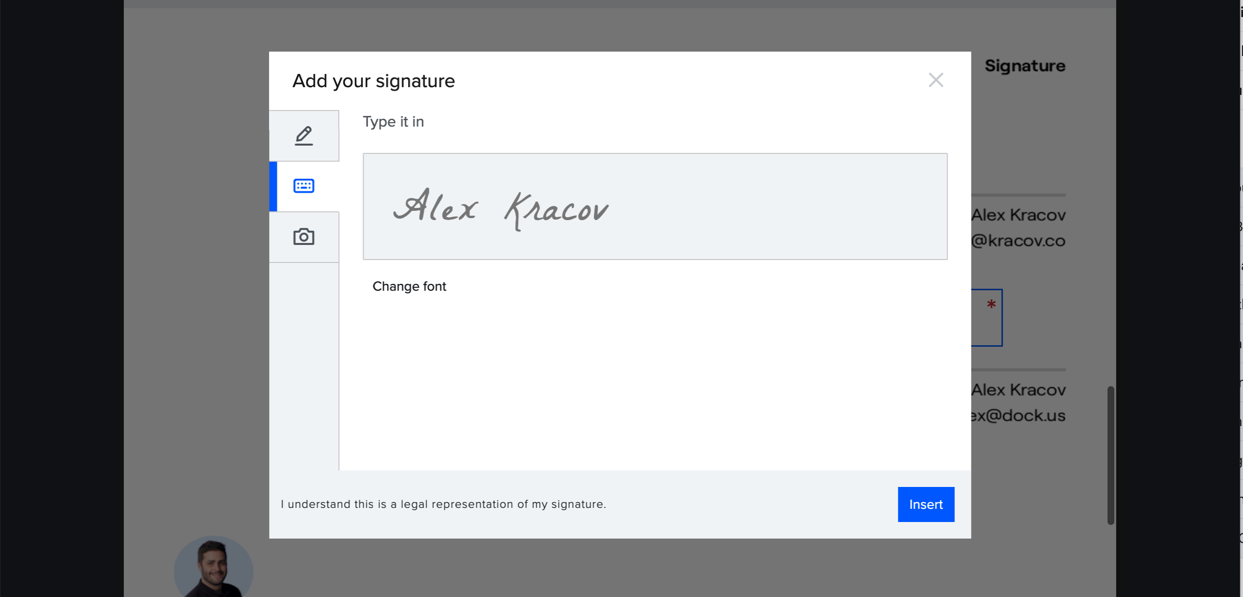 We’ve partnered with DropboxSign for the signature to provide embedded signatures within Dock. With this integration, we’re able to provide a legally binding e-signature solution that complies with e-signature laws around the world.