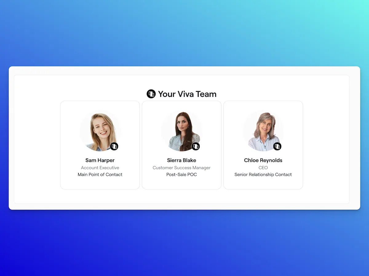 Include names, titles, photos, and contact details for quick reference. Listing your key team members builds trust and makes it easy for stakeholders to know who to reach out to during the process.