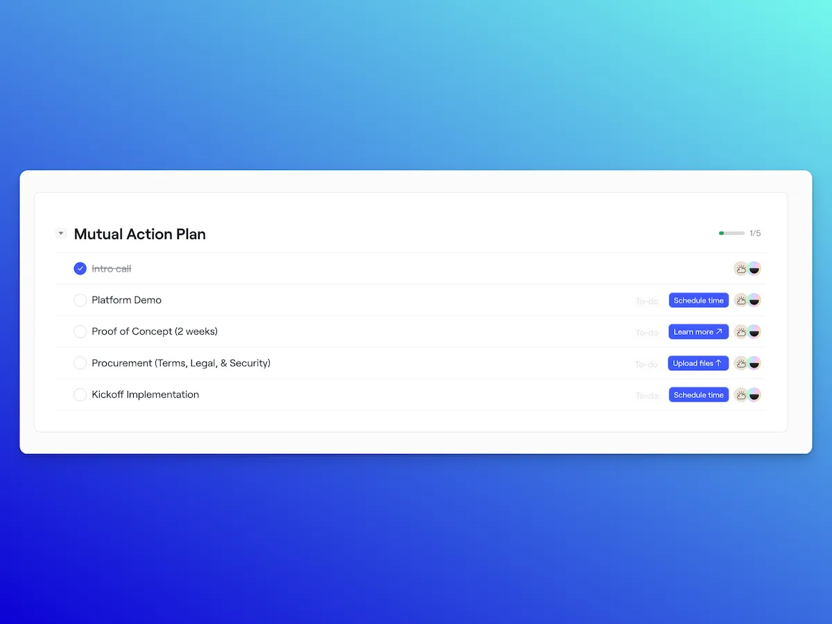 A good proposal turns your champion into a seller. It gives them a clean, organized story to tell, backed by pricing, proof, a mutual action plan, and an easy way to loop in other decision-makers.