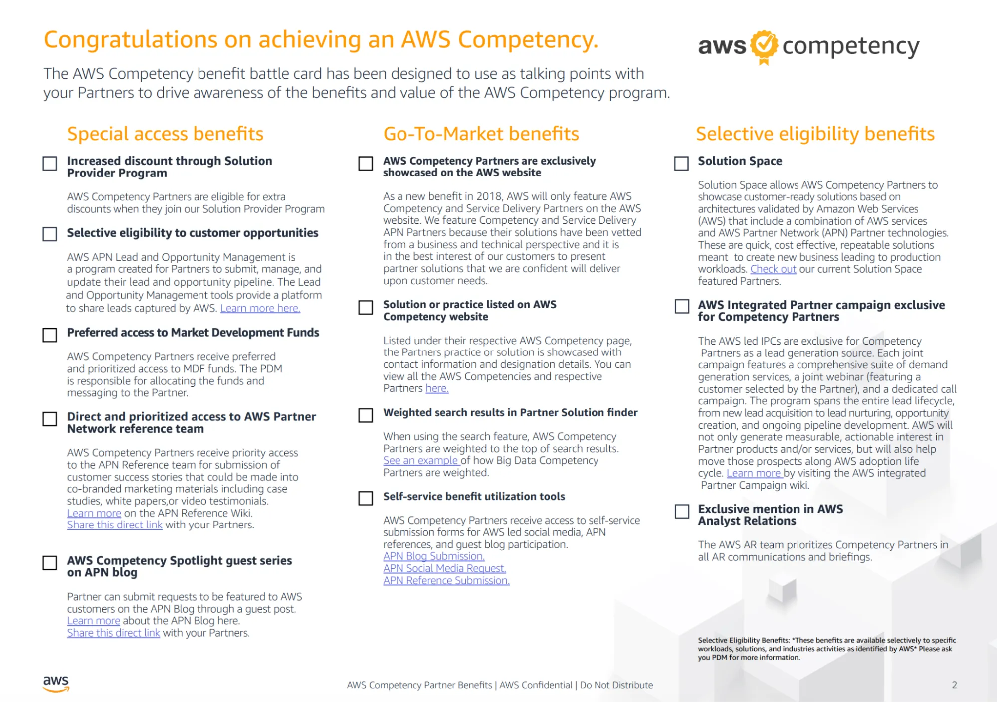 - At just two pages, the asset relies on tables, checkmarks, and short labels, making it easy for a seller to scan or reference during a call without breaking flow.