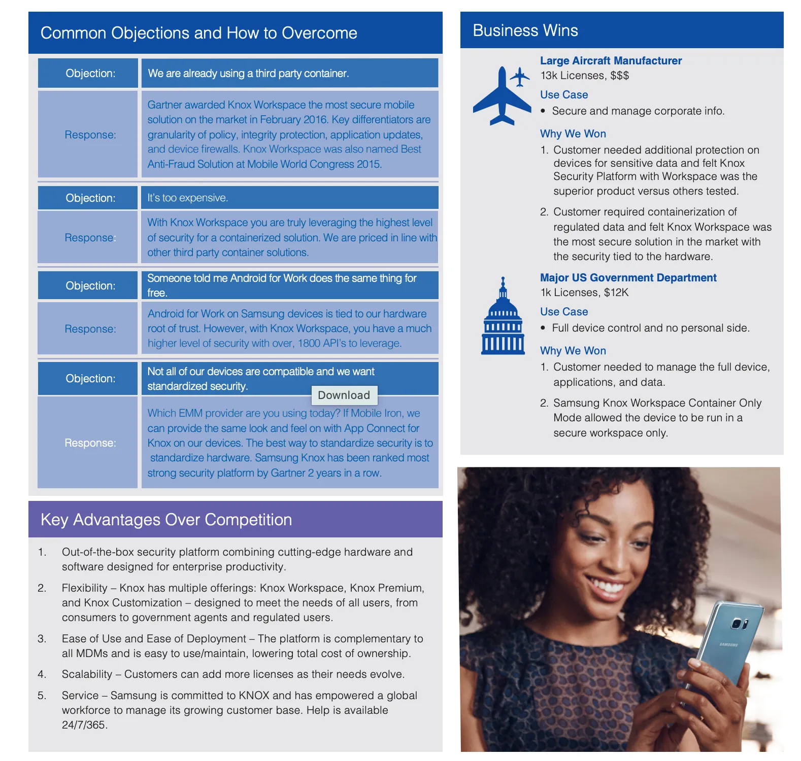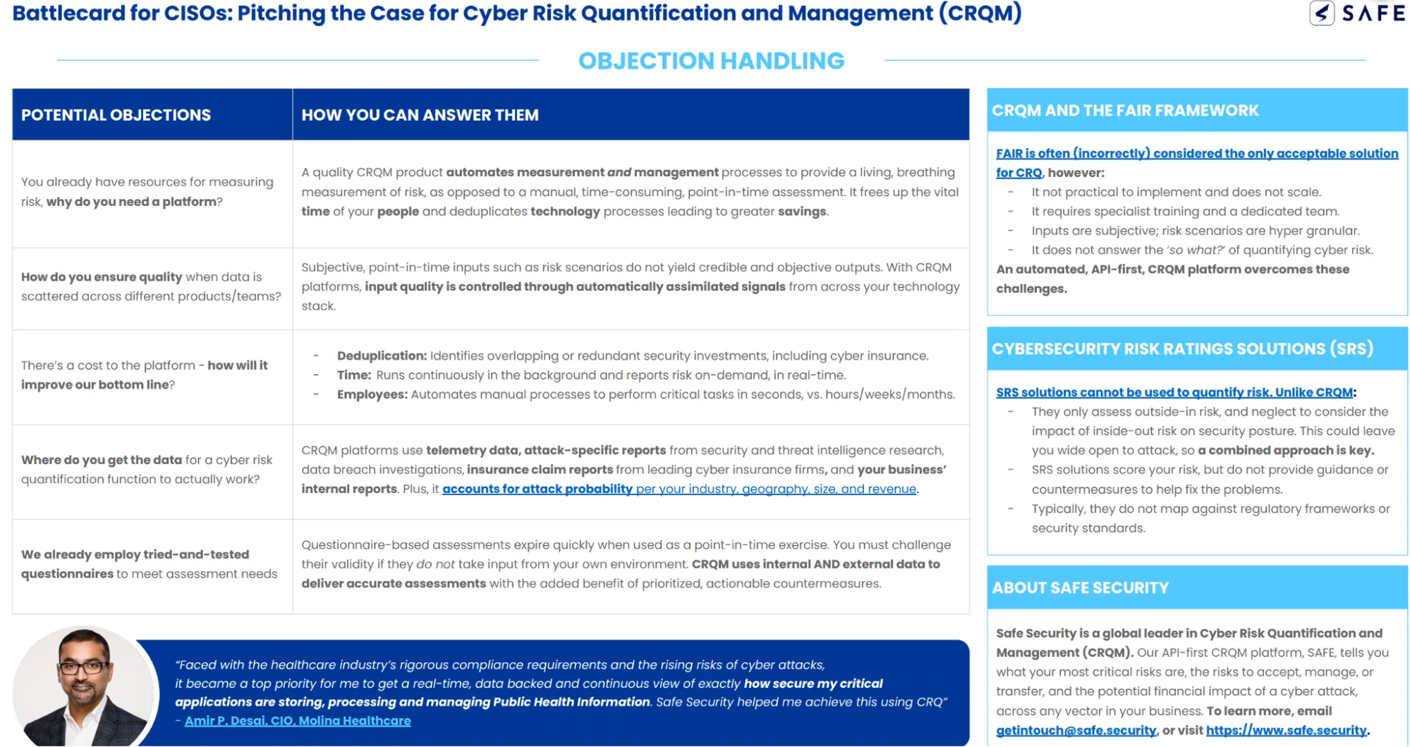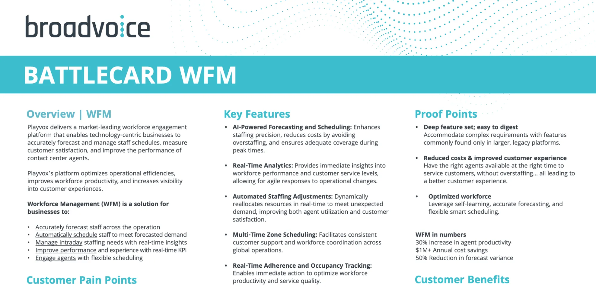 - This is one of the better-designed battlecards in the set, with large pull quotes, short bullets, and clear visual separation that make it easy to scan mid-call.