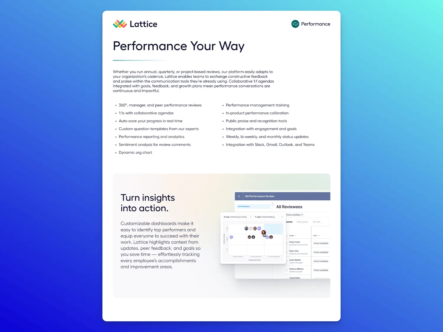 Use case: High-level product one-pager for early in the sales process to introduce the platform’s core value and build trust