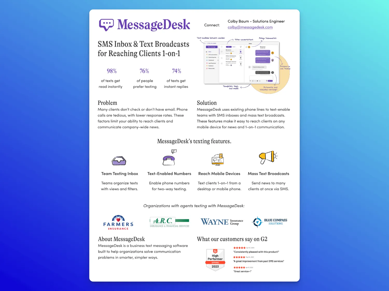 - Bullet-point benefits make it easy to forward without losing context