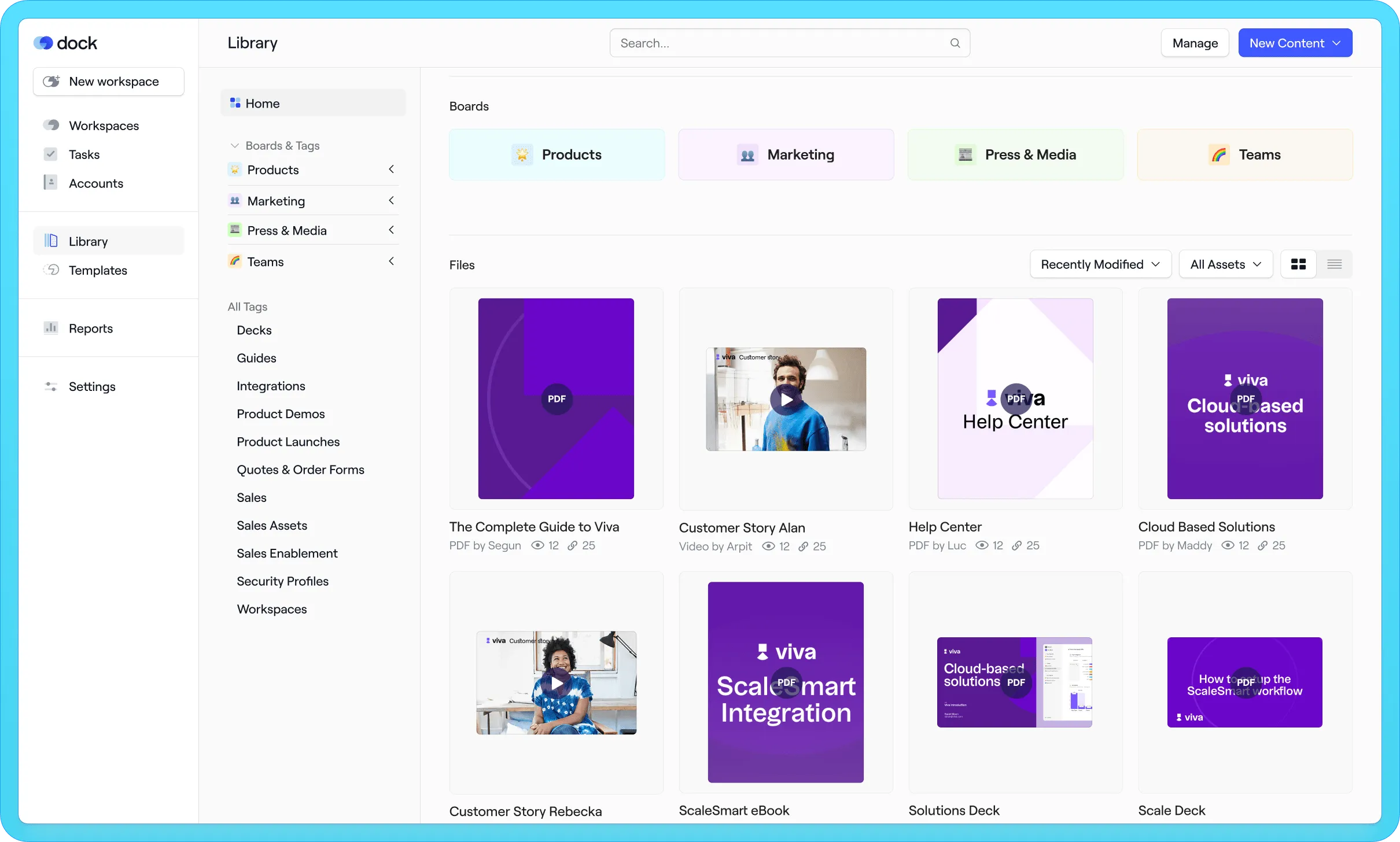 What it is: Dock is an AI revenue enablement platform that brings together content management, buyer collaboration, and rep enablement in one system.