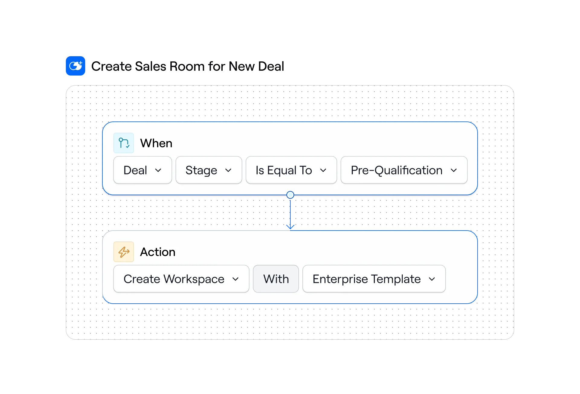 - Automate workspace creation based on deal or opportunity stages