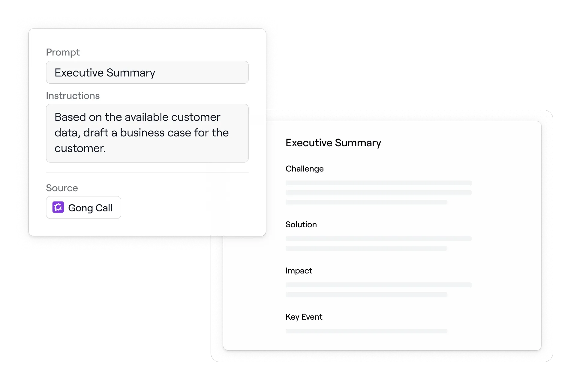 We're not bolting AI onto an old system. Dock was built AI-first to deliver real-time guidance based on your content library, CRM data, and call transcripts. Generate personalized business cases, meeting summaries, and action plans in seconds—not hours. Other platforms are still catching up.